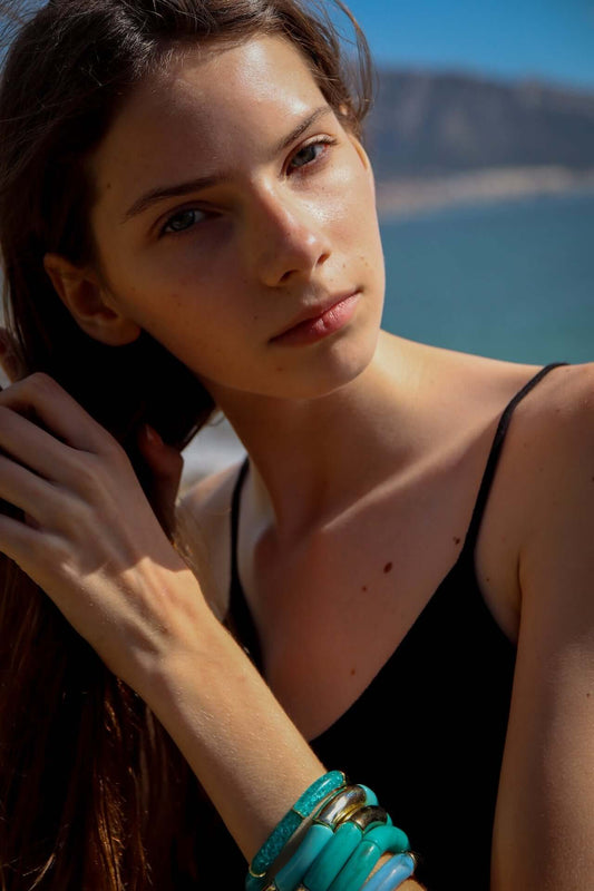 Nos bijoux proviennent de métaux recyclés entre 80 et 100%. Ils sont hypoallergéniques, résistent au temps et peuvent être portés au quotidien. Nous utilisons des métaux "nobles" et pérennes, comme le Gold Filled 14k (une alternative à l'or massif) l'Argent 925 et le Laiton Plaqué Or 750/000 - Toutes nos pierres sont des pierres fines naturelles